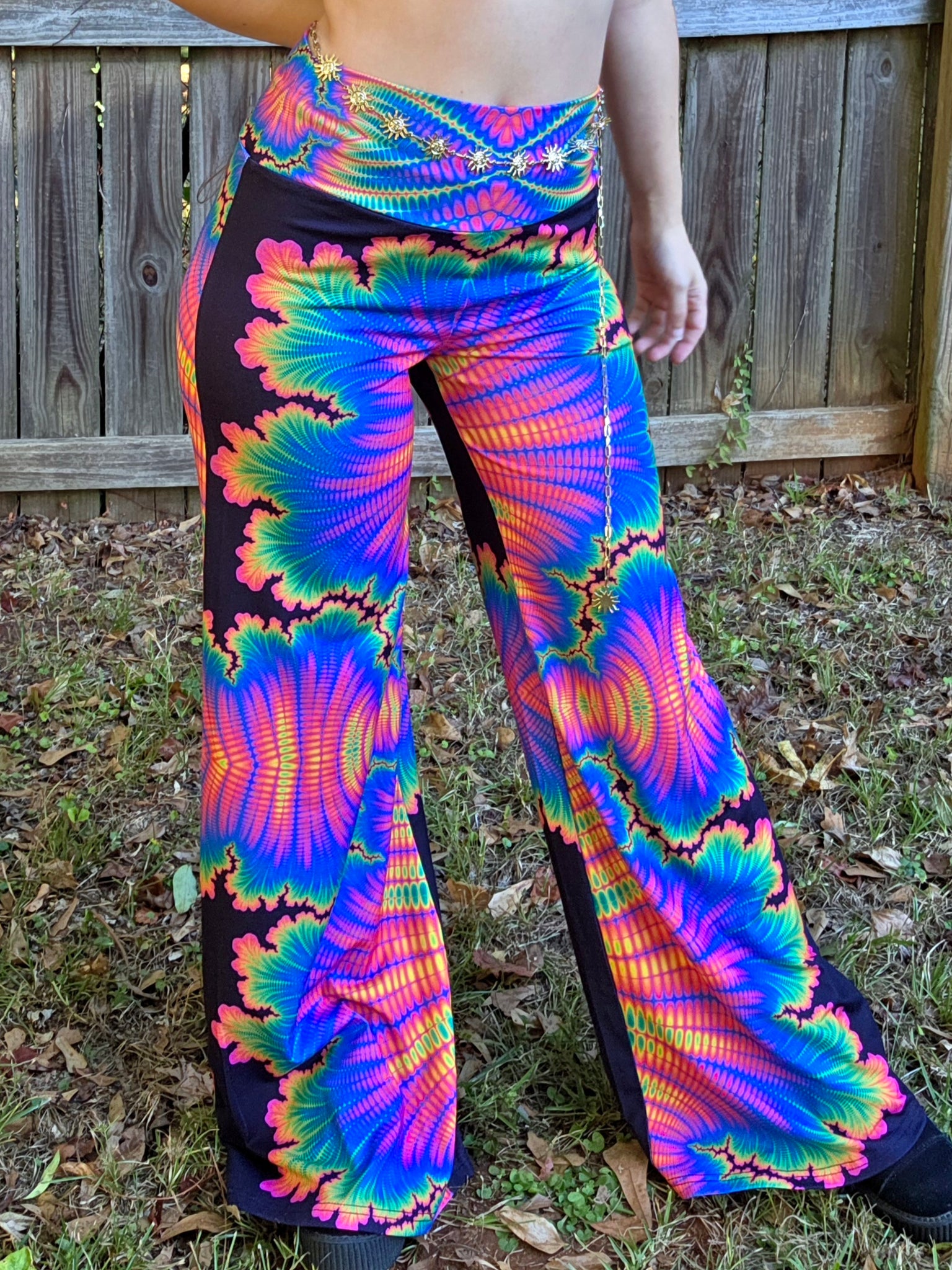 Ready to ship (rts) size medium flares made using my digital art designs! Fabric is cotton and spandex and is stretchy! Sizes run true to size. Inseam is 30 inches. These pants are discontinued and only one in this design has ever been made!