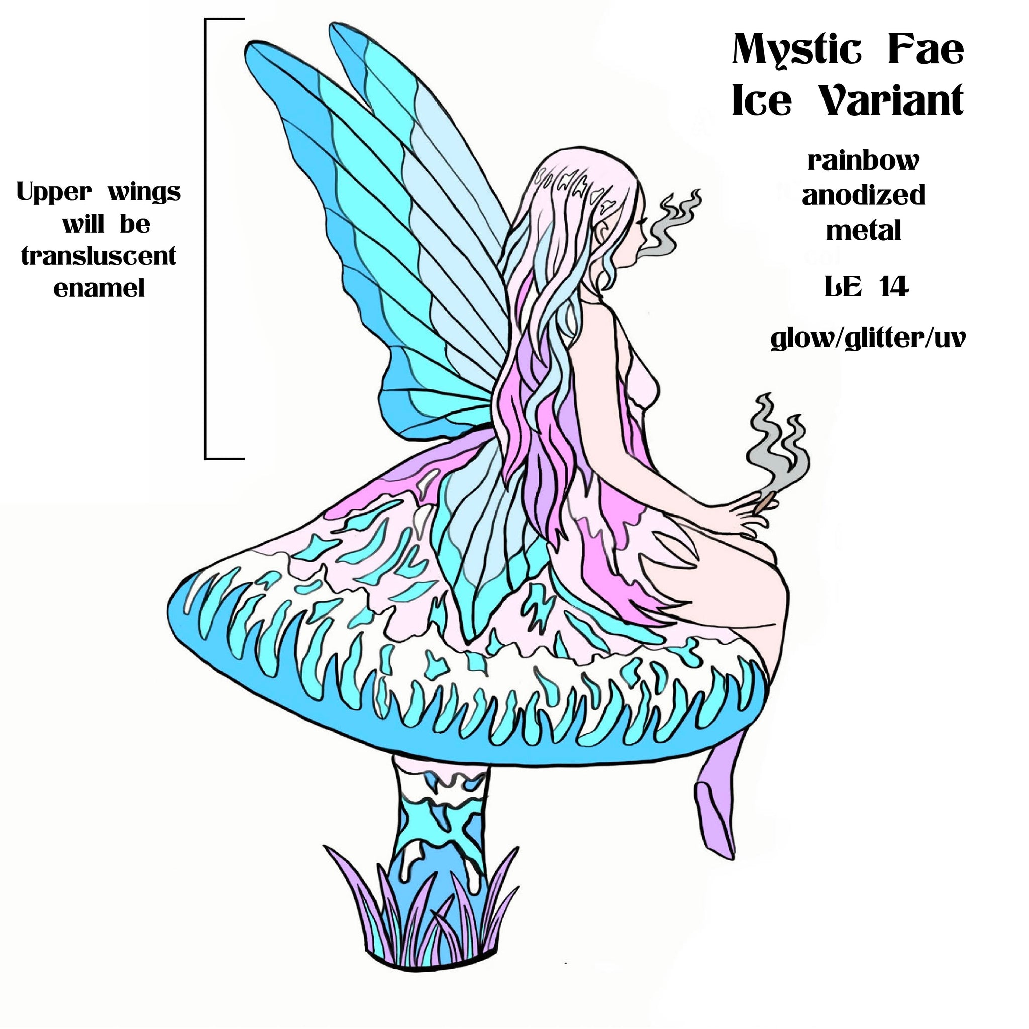 4th Variant: Ice Fae- LE 14/Rainbow Anodized Metal/Partial Glow/Glitter $45