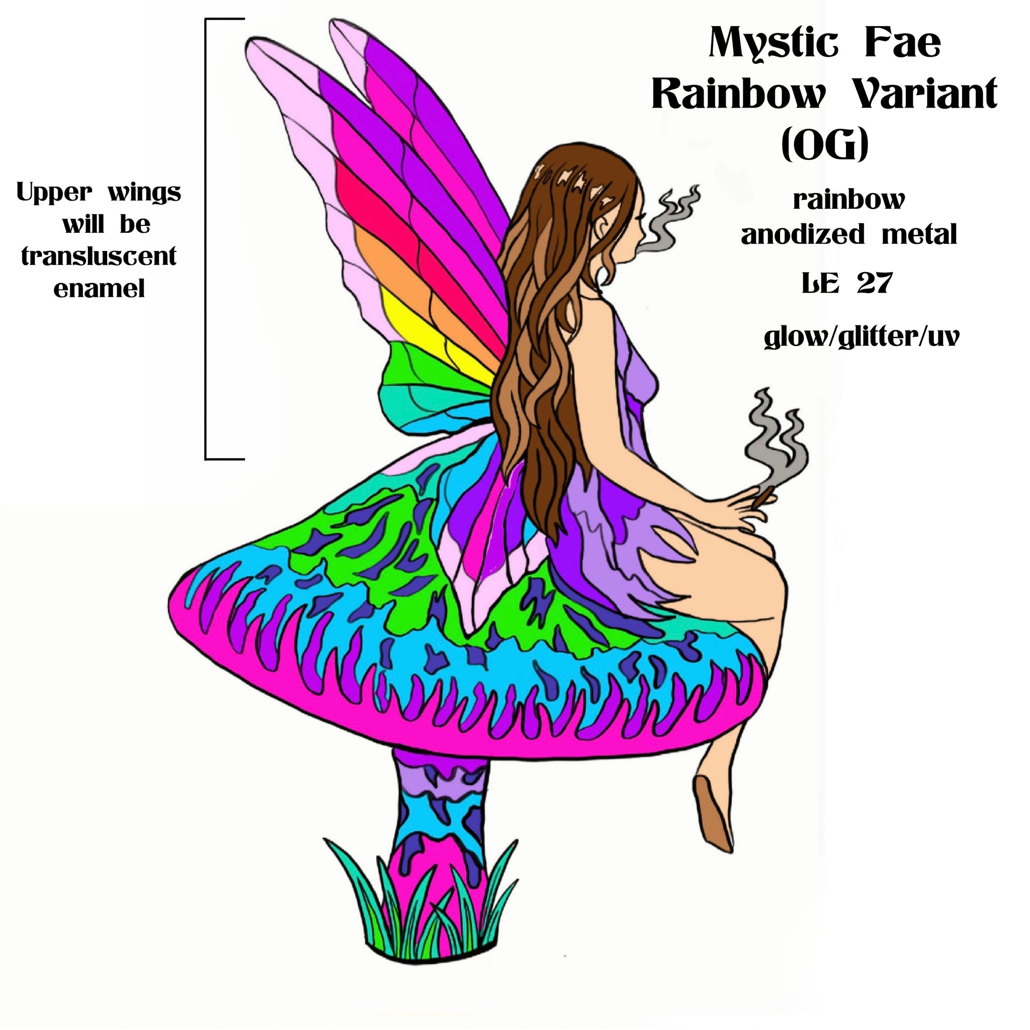 OG: Rainbow Fae- LE 27/Rainbow Anodized Metal/Partial Glow/Glitter $45