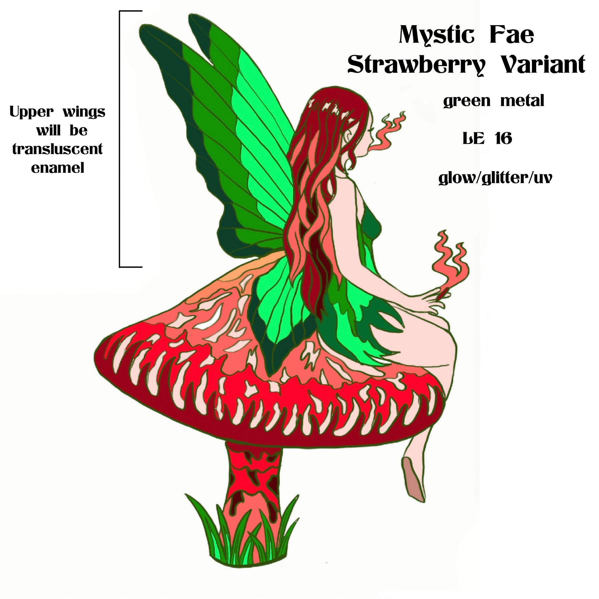 3rd Variant: Strawberry Fae- LE 16/Dyed Green Metal/Partial Glow/Glitter $45